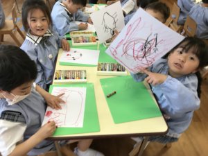 みんなでお外遊びを楽しんだり、お絵描き遊びを楽しんだりしていますよ🎶