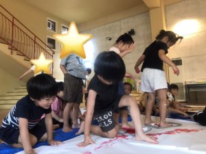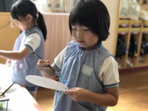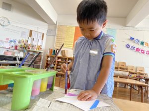 「絵の具もいるで」ということで絵の具も用意して製作スタート!!