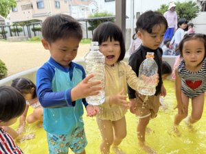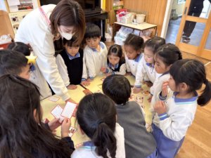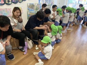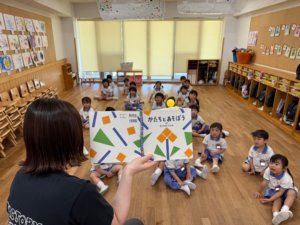 その後には桝本先生と一緒にゲームをして、大喜びの年中組さん😆
