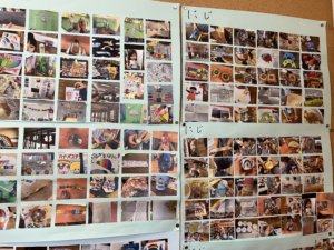 下から上にいく順番に小さくなっていくよう、大きさを見ながら真剣に貼っていました!