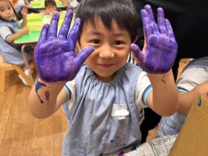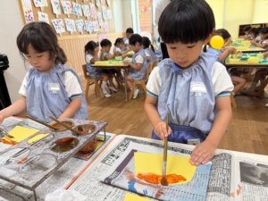 どうする?と相談したところ絵の具で色を作って好きな色の折り紙を作ることになりました🎨