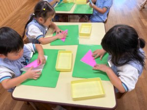 年長組:ゆりクラス活動① 折り紙(1)チューリップ🌷