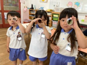 他にも望遠鏡を作って色んなところを覗いてみたり、提灯を作ってお祭りを楽しんだり、、、