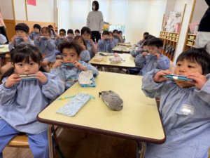 最近では忙しい毎日の中、お遊戯やハーモニカ、合奏のお稽古を頑張っていますよ♪