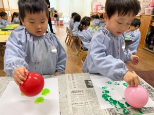 まずは、紙に風船を使ってスタンプしていきます🎈