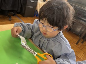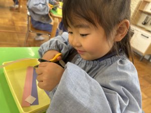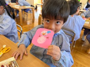 今日はハートの周りにパッチン切りした折り紙を1枚1枚丁寧に貼っていきました✨
