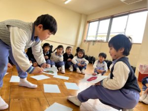 幼稚園で1番のお兄さんお姉さんになり、年少組さんが困っていると教えてあげたり