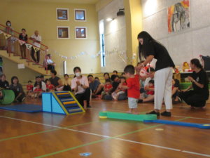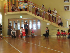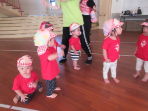 普段の体操で先生と取り組んでいる運動をこの日はお母さん達と一緒に頑張りました。