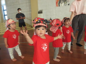 大勢のお客さんに緊張していましたが、いつも踊っている曲が聞こえてくると膝を曲げたり先生の掛け声を真似して「ぱ!」と言いながら片手を広げて踊る姿がとっても可愛かったですよ♡