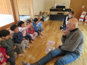 「英語を聞いて発音してみる。英語に興味 をもとうとする。外国の先生と触れ合ってみる」などを目的とした保育園の英語の時間を楽しむことができました!