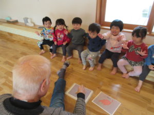 とても背の高い先生でしたが、先生の優しさやひょうきんさ😆に触れると子どもたちもすぐに慣れ、この日は色の英語を習いましたよ~