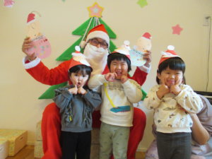 子ども達からサンタさんに来てくれてありがとうのプレゼントも渡しましたよ😊