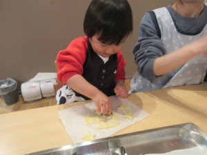 何が始まるの?と不思議そうにしている子もいましたが、手を洗いエプロンを着て型抜きスタートです!
