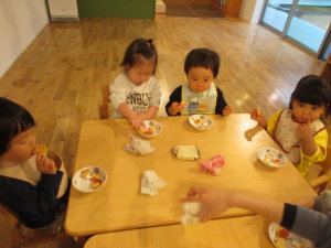焼き上がったクッキーはおやつで食べました。